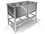 Модель ВМ-21/330 состоит их двух сварных моечных ванн, изготовленных из нержавеющей стали AISI 304. Толщина стенок ванны составляет 0.8 мм. Она также оборудована специальными отгибами, понижающими риск получить травмы при работе. Каркас данной модели также имеет сварную конструкцию из профиля толщиной 2 мм. Каркас покрыт порошковой краской серого цвета. Диаметр выходного отверстия в сифоне имеет высокую пропускную способность и составляет 50 мм. Ванна имеет напольное исполнение и устанавливается на 4-х ножках из пластика размером 40х40 мм. Ножки стола оборудованы специальной системой регулирования высоты, позволяя компенсировать неровности пола. Сварной каркас и обвязка стола обеспечивают лучшую устойчивость и статическую прочность конструкции. Обвязка стола оборудована поперечными стяжками, служащими для усиления конструкции.